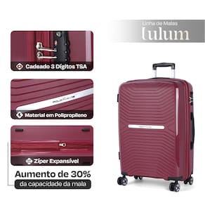 Mala de viagem bordo 10kg tulum vinho un Somos a trilha malas, uma loja especializada em malas, sacolas e mochilas. Atendemos com qualidade e segurança, tanto em nossa loja física em alphaville sp quanto online, oferecendo as melhores marcas com preços competitivos. Confira abaixo as informações detalhadas sobre o produto: A mala de viagem bordo polo king tulum combina resistência e praticidade para suas viagens curtas. Com dimensões de 55 x 35 x 25 cm, ela é ideal como bagagem de mão. Fabricada em polipropileno, um material conhecido por ser altamente resistente e inquebrável, essa mala garante a proteção dos seus pertences. Seu design moderno inclui rodas duplas 360, que proporcionam uma movimentação suave em todas as direções, além de um cadeado tsa de 3 dígitos para segurança extra. O zíper expansível aumenta a capacidade da mala em até 30%, oferecendo mais espaço para seus itens sem comprometer o conforto durante o transporte. A alça retrátil em alumínio possui regulagem de altura, proporcionando maior comodidade. Especificações: material: polipropileno rodas: duplas 360 para movimentação suave segurança: cadeado tsa de 3 dígitos Tamanho: bordo, ideal para viagens curtas Capacidade expansível: aumenta em até 30% Dimensões: altura: 55 cm largura: 35 cm profundidade: 25 cm peso: 2,5 kg Qual é o material da mala A mala é feita de polipropileno, um material super resistente e inquebrável. Qual é a capacidade expansível da mala O zíper expansível aumenta a capacidade em até 30%. Quais são as dimensões da mala A altura é de 55 cm, a largura de 35 cm, e a profundidade de 25 cm. A mala tem algum recurso de segurança Sim, ela possui cadeado tsa de 3 dígitos para maior segurança dos seus pertences. A mala é fácil de transportar Sim, suas rodas duplas 360 e alça retrátil em alumínio com regulagem de altura proporcionam conforto e movimentação suave. do fabricante: vitalícia Mande a sua pergunta Marca: Não Informado
