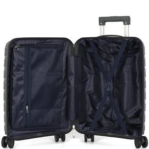 Material: ABS / Poliéster. Alça de mão superior e lateral. Alça carrinho retrátil com regulagem de altura. Cintas elásticas internas para organização. Bolso interno com fechamento em zíper. 4 rodas duplas com giro de 360.