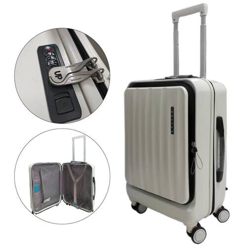 Com rodas duplas com giro 360, cadeado embutido, carrinho com estágios de altura, logo lateral em metal UP4YOU. Sua abertura é lateral com zíper personalizado da marca. Forro em poliéster, divisória interna com fechamento em zíper, elástico interno e bolso interno com zíper. Mala feita no material Policarbonato altamente resistente e de fácil manuseio.