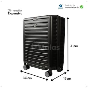 Mala De viagem Bordo LUXO com Expansor Cor: Cinza Marrom Mala de Viagem Bordo LUXO com Expansor - Preto Carbono