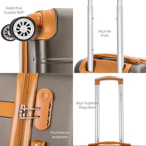 Fabricada em ABS, esta mala é resistente e durável, equipada com 4 rodas duplas 360 que proporcionam fácil manobrabilidade. Possui cadeado fixo com senha para segurança, carrinho com ajuste de altura para maior conforto e alça de mão. No interior, conta com cinta elástica e divisória em zíper para manter tudo organizado. Além disso, a mala pequena é aprovada pela Agência Nacional de Aviação Civil (ANAC) para ir à bordo, tornando-a a escolha perfeita para suas viagens.