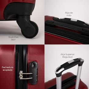 Fabricada em ABS, esta mala é resistente e durável, equipada com 4 rodas 360 que proporcionam fácil manobrabilidade. Possui cadeado fixo com senha para segurança, carrinho com ajuste de altura para maior conforto e alça de mão. No interior, conta com cinta elástica e divisória em zíper para manter tudo organizado. Além disso, a mala é aprovada pela Agência Nacional de Aviação Civil (ANAC) para embarque, tornando-a a escolha perfeita para suas viagens.