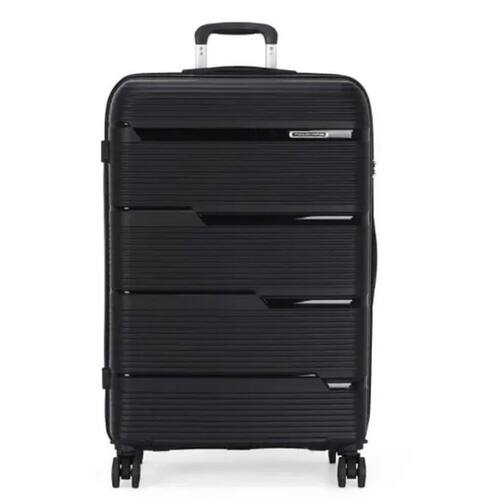 Características: - Material em Polipropileno; - Carrinho com estágio de altura; - Rodas com giro 360º removível; - Interior espaçoso com cintas organizadoras e divisória; - Bolso interno com fechamento em zíper; - Cadeado Embutido Numérico; - Alça superior e lateral; - Forro interno para proteção; - Logo em metal; - Resistente.