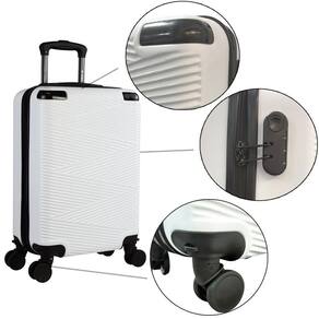 Mala de Viagem Bordo Zig Zag em Abs rodas 360 Cad Embutido Cor: Branco Estilo e praticidade para acompanhar você em todas as viagens. A Mala de Bordo Zig Zag combina design moderno com alta funcionalidade. Seu acabamento texturizado em padrão zig zag confere um visual único, além de ajudar a disfarçar riscos e manter a aparência sempre elegante.