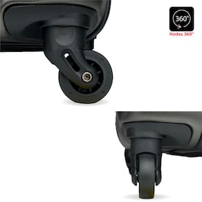 As rodas com giro 360 Grau facilitam o deslocamento da mala, fazendo com que ela possa ser conduzida em qualquer direção, sem precisar incliná-la e sem fazer esforço.