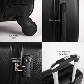 Fabricada em ABS, esta mala é resistente e durável, equipada com 4 rodas 360 que proporcionam fácil manobrabilidade. Possui cadeado fixo com senha para segurança, carrinho com ajuste de altura para maior conforto e alças de mão e lateral. No interior, conta com cinta elástica e divisória em zíper para manter tudo organizado. A mala grande é a escolha perfeita para suas viagens.