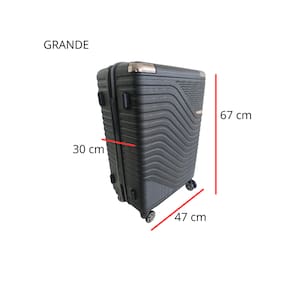 Cor: Cinza (Acabamento Fosco Texturizado) Dimensões: 67cm (Altura) x 47cm (Largura) x 30cm (Profundidade) Material: ABS rígido resistente a impactos Rodas: 4 rodas duplas com giro 360° Segurança: Cadeado numérico integrado Puxador: Alumínio telescópico com ajuste de altura
