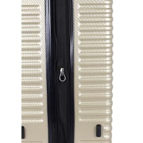 Policarbonato ultra resistente com memória de forma Cadeado embutido com segredo numérico Alça superior personalizada com logo Expansão de até 30% no tamanho 28 Apoio lateral para pendurar acessórios Rodas duplas removíveis com rotação 360 Garantia vitalícia para de fabricação