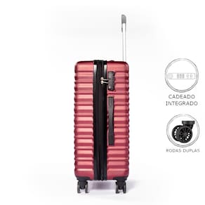 - Malas em ABS, material de alta qualidade. - Cadeado TSA acoplado. - Rodas Duplas com Giro 360º - Mala com zíper expansivo. - Elástico interno e divisória interna com zíper.