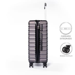 - Malas em ABS, material de alta qualidade. - Cadeado TSA acoplado. - Rodas Duplas com Giro 360º - Mala com zíper expansivo. - Elástico interno e divisória interna com zíper.