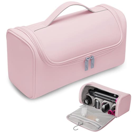 Características do produto: 1. Serve perfeitamente para Dyson Airwrap Styler/Dyson Supersonic e seus acessórios. 2. Cinco compartimentos independentes armazenam Airwrap Styler, tambores de airwrap, escovas, secador de cabelo e outros acessórios, o que pode evitar o atrito entre dispositivos. 3. O material externo de poliuretano é à prova d'água e resistente ao desgaste, e o acolchoamento interno de esponja espessa tem boa proteção. 4. Um bolso de rede elástico é especialmente projetado dentro para armazenar pequenos itens como grampos de cabelo, faixas de cabelo e óleos essenciais para cuidados com o cabelo. 5. O design do gancho pode economizar espaço na bancada e evitar que o modelador fique molhado. Especificações: Quantidade: 1 pacote. Dimensões: 16,5 x 31,5 x 14 cm Peso: 340 g (sem embalagem) Material: PU Cor: como mostrado - Ajuste perfeito: este organizador de viagem é projetado para Dyson Airwrap Styler, com um bolso principal para Airwrap Styler e quatro compartimentos para barris, escovas, secador de cabelo e outros acessórios. Também compatível com Dyson Supersonic e seus acessórios - Proteção total: nossa capa Dyson Airwrap usa couro PU de alta qualidade como material externo, que é à prova d'água e durável, para que você não precise se preocupar com manchas de água e umidade danificando o modelador de cabelo. O interior usa uma almofada de esponja espessa, que é macia e elástica para evitar que a superfície do modelador seja arranhada, oferecendo proteção confiável para o seu equipamento - Mantenha-se organizado: o suporte de airwrap da Dyson tem um bolso interno de malha elástica especialmente projetado para segurar o cano longo do Airwrap, que também pode acomodar facilmente vários acessórios pequenos, como grampos de cabelo, faixas de cabelo e óleos essenciais de cuidados com o cabelo para evitar que eles rolem e colidam na bolsa e evitar derramamentos. Você pode dizer adeus ao trabalho de procurar itens pequenos em todos os lugares e fazer o armazenamento em boa ordem - Design de gancho pendurado: nossa bolsa de viagem para ferramentas de cabelo está equipada com um gancho de metal resistente e antiderrapante. Basta pendurar o gancho no gancho de parede ou prateleira para pendurar a bolsa de armazenamento verticalmente. Isso pode economizar espaço quando muitos itens não podem ser colocados na bancada - Fácil de transportar: as dimensões externas da capa do secador de cabelo são 16,5 x 31,5 x 14 cm. É equipado com uma alça de mão atenciosa, durável e confortável de segurar. Se você colocá-lo em uma mala ou carregá-lo com você, é livre de desconforto e realmente se torna seu parceiro íntimo e elegante durante a viagem