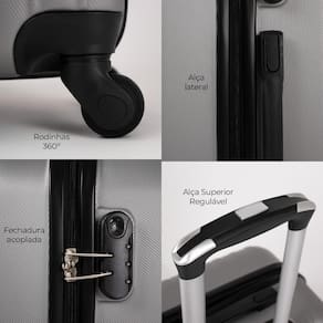 Fabricada em ABS, esta mala é resistente e durável, equipada com 4 rodas 360 que proporcionam fácil manobrabilidade. Possui cadeado fixo com senha para segurança, carrinho com ajuste de altura para maior conforto e alças de mão e lateral. No interior, conta com cinta elástica e divisória em zíper para manter tudo organizado. A mala média é a escolha perfeita para suas viagens.