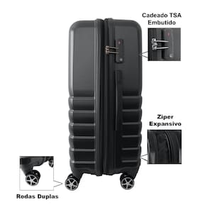 Mala de Viagem Média Expansível em ABS IKA Flex, Cadeado TSA Embutido, Rodas Duplas 360