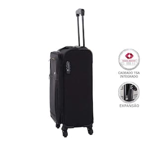 - Malas em POLIESTER, material de alta qualidade. - Cadeado TSA acoplado. - Rodas com giro 360º - Mala com zíper expansivo. - Divisória interna com zíper.