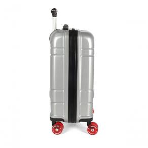 Bolso interno com zíper Bolso lateral organizador removível (para os modelos P) Forro personalizado em poliéster Alça retrátil Rodas duplas de skate com giro 360 Cadeado embutido Abertura lateral com zíper personalizado da marca Elástico interno Design premium Logo em metal resinado Divisória interna com fechamento em zíper personalizado