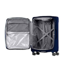 Mala De Viagem Kick Air - SAMSONITE A Mala Samsonite Kick Air é fabricada em Poliéster e possui: Na parte interna, amplo compartimento, cinta elástica para fixação de roupas, bolso em tela com fechamento em zíper, bolso em PVC com fechamento em zíper, 2 bolsos em tela nas laterais e totalmente forrada em poliéster reciclável. Na parte externa, alça superior, alça lateral, alça inferior, 2 bolsos frontais com fechamento em zíper, carrinho embutido, puxador com botão liberador e regulagem de altura, 4 rodas duplas com giro 360, zíper duplo, expansível em todos os tamanhos, cadeado com trava TSA embutida, etiqueta de identificação e fechamento em zíper. Cor: Azul Marinho Material: Poliéster 2 compartimentos frontais Alça carrinho Alça de mão superior, inferior e lateral Bolsos internos em mesh Cintas elásticas internas organizacionais Cadeado com combinação TSA 4 rodas duplas 360 Capacidade: 70 Litros DIMENSÕES Peso: 3,8 kg Altura: 67 cm Largura: 42 cm Profundidade: 30 cm