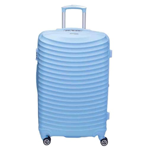 Cor: Azul Claro Material: ABS Alça de mão superior e lateral Cadeado fixo com combinação Divisória Interna Cintas organizadoras internas 4 rodas duplas 360 Carrinho em alumínio embutido Capacidade: 113 Litros