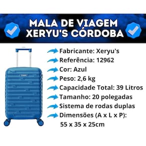 • 01 Mala de Viagem Xeryu s Córdoba 20 • Certificado de Garantia