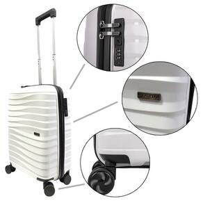 Mala de Viajem Bordo 360 PP Polipropileno Cad Flat Premium Cor: Branco Viaje com praticidade, estilo e segurança com a Mala de Bordo 360 da Coleção Essencial. Desenvolvida para quem busca funcionalidade sem abrir mão da elegância, ela é perfeita para viagens curtas e negócios.