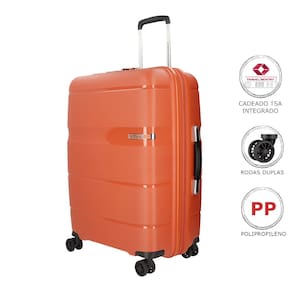 - Malas em Polipropileno, material de alta qualidade. - Cadeado TSA acoplado. - Rodas Duplas com Giro 360º - Elástico interno e divisória interna com zíper.