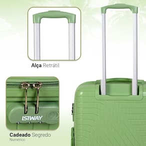 A Mala Maldivas da Isibrás é a solução perfeita para quem viaja e precisa de espaço sem comprometer a praticidade. Com capacidade para até 23kg, conforme as normas da ANAC para bagagem despachada, ela é ideal para viagens mais longas. Aqui estão alguns dos seus principais diferenciais: Expansor: O que faz dessa mala uma verdadeira aliada é a sua função de expansão, perfeita para quem precisa de espaço extra na volta da viagem ou para aqueles itens de última hora. 4 Rodas Duplas com Giro de 360: Quer carregar sua mala com facilidade? As rodas 360 garantem total mobilidade, permitindo que você a leve sem esforço por qualquer superfície. Segurança: A mala vem com cadeado fixo com segredo, oferecendo mais segurança para seus pertences. Design Moderno: O logo ISIWAY em metal aplicado na parte frontal, junto com as alças ergonômicas, trazem sofisticação e conforto para quem busca não só funcionalidade, mas também estilo. Seja para viagens curtas ou longas, a Mala Maldivas é feita para facilitar sua vida em cada detalhe. Material: Polipropileno Possui estrutura rígida ultra resistente Comporta até 23 kg (conforme norma da ANAC para bagagem despachada) Forro estampado em Nylon na cor cinza Bolso grande na tampa em tela com fecho em zíper para separação de bagagem (parte interna) Tamanho: 65 x 40 x 26cm