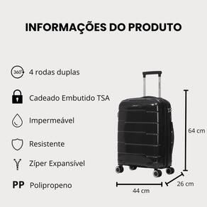 Fabricada em polipropileno resistente, a mala garante durabilidade e proteção contra impactos.