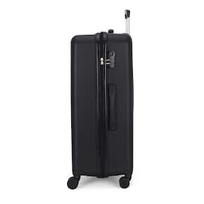 A abertura lateral possui um zíper personalizado da marca, enquanto a mala é fabricada em PP (polipropileno), um material altamente resistente e de fácil manuseio. O design inclui um logo em metal e um acabamento em alto relevo, complementado por um forro em poliéster, divisória interna com elástico, fechamento em zíper e bolso interno com zíper.