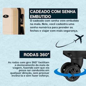 O cadeado com senha vem embutido na mala. Nele, você cadastra uma senha