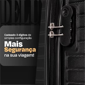 A Mala de Viagem Grande com Rodas 360 Deluxe 28 é o epítome de sofisticação e funcionalidade da coleção DELUXE, confeccionada com material ABS para garantir durabilidade e elegância em suas viagens. Sua estrutura rígida oferece proteção confiável para seus pertences, enquanto as quatro rodas com sistema de giro 360 proporcionam uma movimentação suave e sem esforço em todas as direções. Com um cadeado fixo com segredo integrado, esta mala oferece tranquilidade adicional durante seus deslocamentos. A abertura central facilita o acesso rápido ao interior da mala, complementada pelo carrinho embutido, que proporciona conforto e praticidade ao transportar sua bagagem. Internamente, um elástico mantém suas roupas organizadas e no lugar, enquanto uma alça de mão emborrachada oferece conforto ao carregar a mala. Além disso, uma divisória interna com zíper ajuda a manter seus pertences organizados, aproveitando ao máximo o amplo espaço interno oferecido pela mala. O fechamento com zíper garante a segurança de seus pertences enquanto você viaja, e o logo em metal adiciona um toque de sofisticação ao design geral. A Mala de Viagem Grande com Rodas 360 Deluxe 28 é a escolha perfeita para viajantes que buscam qualidade, estilo e praticidade em suas aventuras pelo mundo.