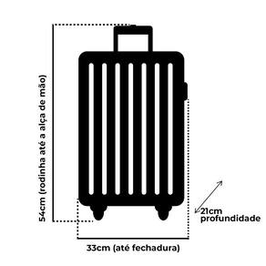 A Mala de Mão contém 4 rodas plásticas resistentes, fechadura segura e carrinho embutido regulável que se adapta a altura do usuário. Além disso, possui alça superior e textura microdiamante.