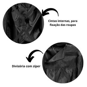 O interior é bem planejado, com divisórias, elásticos e bolso interno com zíper, garantindo organização completa.