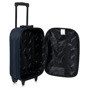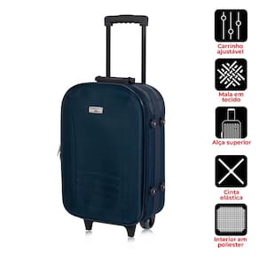 Característica da Mala Pequena Lucerna Cor: azul Tamanho: P Material: Poliéster (EVA) 2 rodas Carrinho externo regulável Alça superior Interior forrado em poliéster Cinta elástica com trava Garantia: 3 meses Dimensões (A x L x P): 53x33x17 cm Peso (Kg): 2,6 Capacidade (Litros): 27