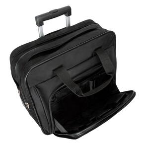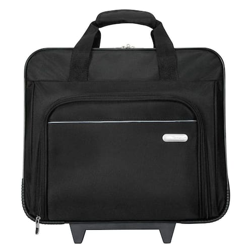 A workstation frontal inclui prendedores para canetas, compartimento para cartões de visita, bolso com zíper, bolso para telefone celular e largo bolso para guardar acessórios adicionais. O Case para Notebook Metro Rolling Targus também inclui um grande compartimento com zíper para guardar pertences essenciais de escritório ou roupas para viagens curtas.