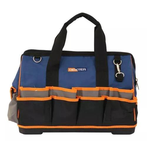 A mala de ferramentas da Dexter é excelente para carregar ferramentas elétricas e manuais. Possui tecido resistente que suporta bastante peso. Além disso, possui design diferenciando com bolsos laterais que facilitam a organização das ferramentas.Produto BolsaTipo Para organização e transporte de ferramentasLinha Marca exclusivaMarca DexterAltura 32 cmLargura 22,5 cmProfundidade 2,25 cmComprimento 40 cmDimensão 32x22,5x2,25 cmAltura em Polegadas 12.3/5 "Largura em Polegadas 8.6/7 "Profundidade em Polegadas 8/9 "Comprimento em Polegadas 16 "Dimensão em Polegadas 12.3/5x8.6/7x8/9 "Material TecidoTipo de Material PoliésterPossui Fecho SimTipo de Fecho ZiperMaterial do Fecho MetalCapacidade 15 LCapacidade de Peso 20 KgCor Azul ,Laranja e CinzaTonalidade AzulAcompanha Alças SimTipo de Alça ExternaMaterial da Alça TecidoAcompanha Bandeja NãoAcompanha Gaveta sem GavetasPossui Organizador SimPeso do Produto 1,27 KgProduto Acompanha Embalagem NãoAltura da Embalagem 85 mmLargura da Embalagem 440 mmProfundidade da Embalagem 270 mmPeso do Produto na Embalagem 1,27 Kg