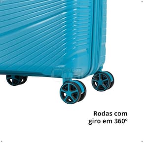 Rodinhas com giro 360º não removíveis proporcionam mobilidade suave em qualquer direção, facilitando o transporte em aeroportos e rodoviárias, trazendo ainda mais estabilidade e firmeza no deslocamento.
