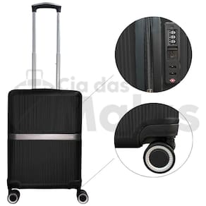 Mala de Viagem Bordo Rodas 360 Cadeado TSA Design Moderno Ampla Versátil Cor: Preto