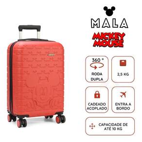 Mala Viagem De Bordo Pequena Rodinha 360 Mickey Mouse Disney Cor: Vermelho Mala Viagem De Bordo Pequena Rodinha 360 Mickey Mouse Disney