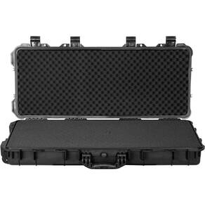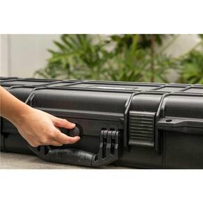 Possui na parte interna espumas removíveis que oferecem máxima proteção. Na parte superior, a espuma é tipo caixa de ovos e, na parte inferior, a espuma é pré-recortada em blocos, que se moldam ao formato e tamanho de cada objeto, conforme necessidade. Possui proteção IP67 (6 = totalmente protegida contra poeira e 7 = Protegido contra imersão temporária em Água). Possui válvula manual de compensação de pressão que equilibra a pressão interior com a exterior, facilitando a abertura da maleta. Conta com índice de proteção contra impactos mecânicos (IK08), 4 travas e 4 porta-cadeados (não acompanham cadeados). Além de rodas para transporte, facilitando a movimentação.