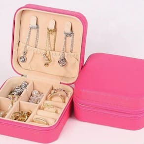o mini porta jóias maleta 14 compartimentos aveludado caixa cor rosa da marca expresso modas é perfeito para organizar suas jóias de forma prática e elegante. Com 14 compartimentos espaçosos, você terá espaço suficiente para guardar até 40 peças. Feito com couro sintético resistente no exterior e forro aveludado no interior, este estojo é ideal para viagens ou para uso diário. Com fechadura para maior segurança e zíper para facilitar o acesso, este porta jóias é uma ótima opção para manter suas jóias sempre protegidas e organizadas. Seja bem vindo você chegou em uma equipe especializada para melhor te atender. Todas as fotos são de produtos reais e de exclusividade da nossa loja, sendo assim apenas nós temos o direito de imagem sob qualquer mercadoria anunciada. Veja nossos outros produtos um pouco mais abaixo em mais anúncios do vendedor. Você chegou até aqui se você tem alguma dúvida pendente sobre o produto anunciado nos diga. Estamos sempre aqui para lhe responder sempre