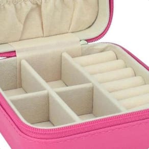 o mini porta jóias maleta 14 compartimentos aveludado caixa cor rosa da marca expresso modas é perfeito para organizar suas jóias de forma prática e elegante. Com 14 compartimentos espaçosos, você terá espaço suficiente para guardar até 40 peças. Feito com couro sintético resistente no exterior e forro aveludado no interior, este estojo é ideal para viagens ou para uso diário. Com fechadura para maior segurança e zíper para facilitar o acesso, este porta jóias é uma ótima opção para manter suas jóias sempre protegidas e organizadas. Seja bem vindo você chegou em uma equipe especializada para melhor te atender. Todas as fotos são de produtos reais e de exclusividade da nossa loja, sendo assim apenas nós temos o direito de imagem sob qualquer mercadoria anunciada. Veja nossos outros produtos um pouco mais abaixo em mais anúncios do vendedor. Você chegou até aqui se você tem alguma dúvida pendente sobre o produto anunciado nos diga. Estamos sempre aqui para lhe responder sempre