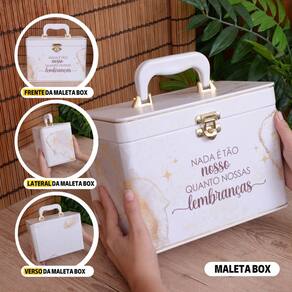 MEDIDAS DA MALETA BOX _ Altura – 26 cm _ Largura – 19 cm _ Comprimento (Dorso) – 15,5 cm