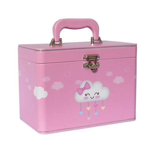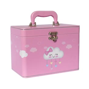 - Maleta em MDF revestida com material sintético e alça revestida e fechamento em metal.