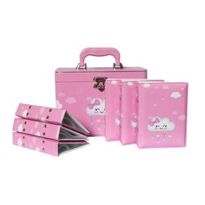 - Acompanha 6 álbuns com capa almofadada em material sintético com 50 folhas plásticas, comportando 100 fotos 10x15 cada