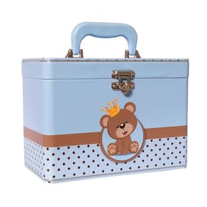 - Maleta em MDF revestida com material sintético e alça revestida e fechamento em metal.
