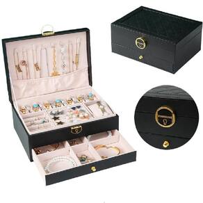 Maleta Caixa Organizadora De Joias Bijuterias Brincos Correntes Relogio Multiuso Penteadeira Viagem Luxo Preta