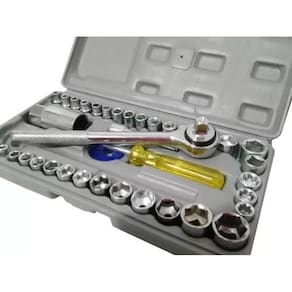 Maleta Catraca Soquetes Chave Reversível 40 Pçs Procurando por um kit completo de ferramentas para qualquer tipo de trabalho Não procure mais do que este incrível conjunto de maleta de ferramentas Com uma chave catraca, este kit é perfeito para qualquer tarefa que precise ser realizada. Com soquetes sextavados, este kit é especialmente projetado para garantir o ajuste seguro de suas ferramentas, o que o torna superior aos estriados, bites de fenda, Philips, Allen, e muito mais. As ferramentas incluídas neste kit são fabricadas em aço com cromo e vanádio, garantindo sua durabilidade e resistência. Com a de qualidade deste material, você pode confiar em suas ferramentas para enfrentar qualquer projeto que precise realizar. Não deixe para depois Adquira agora o seu kit de ferramentas completo e comece a trabalhar em seus projetos de reparo e manutenção com total confiança e segurança. Com este kit, você terá em mãos um conjunto completo de ferramentas que irá ajudá-lo em qualquer tarefa que precise realizar. MALETA SOQUETE 40 PEÇAS 1 Peça - 3/8Chave Reversível 14 Peças - 1/4 Soquetes de Encaixe: 4, 4.5, 5, 5.5,6, 6.5, 7, 7.5, 8, 9,10, 11, 12, 13mm 14 Peças - 1/4Soquetes de Encaixe: 5/32, 3/16, 7/32, 1/4, 9/32, 5/16, 11/32, 3/8, 13/32, 7/16, 15/32, 1/2, 17/32, 9/16 3 Peças - 1/4Soquetes de Encaixe BPT : 1/4, 5/16, 3/8 1 Peça - 3/8 Barra Extensora 3 1 Peça - 1/4 3/8 Adaptador 1 Peça - 3/8 Vela de Ignição 21mm 1 Peça - 6 Punho 2 Peças - 3/8 Soquetes de Encaixe: 15mm 16mm 1 Caixa de Plastico do vendedor: 3 meses
