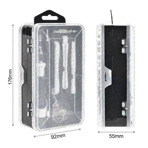 Maleta com ferramenta de reparo para celular Kit de chaves 115 em 1 multiuso ferramentas de reparo O kit chave de precisão é uma ferramenta útil para abrir e reparar dispositivos eletrônicos, como celulares e notebooks. Um conjuntos de diferentes bits ou pontas de parafusos, projetadas para se encaixarem em pequenos e delicados dispositivos. Alta qualidade e ampla aplicação: feito de materiais de alta qualidade para maior durabilidade. Diferentes tipos de exercícios pode acomodar muitas formas de parafusos para atender todas as necessidades. Equipado com uma caixa de armazenamento : o kit de reparação é equipado com uma caixa de armazenamento feito de material de pp e é resistente ao choque. ----------------------- Especificações: ----------------------- Itens inclusos 1 x caixa plástico 1579052mm 1 x eixo de extensão flexível 1 x barra de extensão 128mm 1 x pinça 122mm 3 x ferramentas de alavanca de plástico 86mm e 82mm 1 x ferramentas de remoção de cartão sim 33mm 1 x chave 98mm 1 x ventosa 35mm 1 x bloco magnetizador 1 x agulha para remoção cartão sim 6 x palhetas de abertura 1 x suporte de broca para chave de fenda elétrica 1 x adaptador sleeve 98 x bit chave de fenda Especificação de chave de fenda: - ph000, ph000, ph00, ph00, ph0, ph0, ph1, ph1, ph2, e ph2 - m, word, pzo, pzo, pz1, pz1, pz2 e pz2 - em linha reta: 1.0, 1.5, 2.0, 2.5, 3.0, 3.5 e 4.0 - em linha reta: 1/16, 5/64, 3/32, 7/64, 1/8, 9/64 e 5/32 - cinco estrelas: 0.8, 0.8, 1.2, 1.2, 1.5, 1.5, 2.0 e 2.0 - torx: t3, t3, t4, t4, t5, t5, t6, t6, t7, t7, t8, t8, t9, t9, t10, - t10, t15, t15, t20, e t20 - hexágono: 07, 0.9, 13, 1.3, 1.5, 1.5, 2.0, 2.0, z5, 2.5, 3.0, 3.0, 3.5, 4, 0 e 4.0 - hexágono: 1/16, 5/64, 3/32, 7/64, 1/8, 9/64 e 5/32 - triângulo: 2.0, 2.3, 2.7 e 3.0 - formulário u: 2.6 e 2.6 - forma y: 0.6, 1.5, 2.0 e 2.5 - soquete de 4mm: m2.5, m3.0, m3.5, m4.0, m4.0, m4.5, m5.0 e m5.5 Homologação Anatel: 018681702878