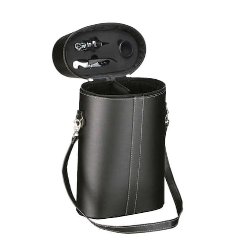 Você irá receber: 1 Maleta em courino para 2 garrafas 1 Saca-rolha dois estágios 1 Salva-gotas anel 1 Corta gotas com tampa