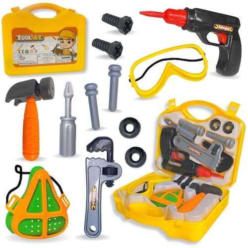 A Maleta de Ferramentas Furadeira Brinquedo Infantil C/Óculos é um brinquedo educativo e seguro para crianças a partir de 3 anos. Acompanhada por uma furadeira de brinquedo, pregos, óculos de proteção, máscara, martelo e chave grifo de plástico, este kit proporciona uma experiência completa para os pequenos construtores. A maleta contém 13 peças, incluindo a furadeira de plástico, o martelo, a chave grifo, pregos, parafusos, chave de furadeira, roscas, óculos e máscara. Feita de plástico resistente, a maleta garante durabilidade e segurança durante a brincadeira. A Maleta de Ferramentas Furadeira Brinquedo Infantil C/Óculos estimula a imaginação e o aprendizado prático das crianças. Proporcione momentos de diversão e aprendizado com este brinquedo educativo