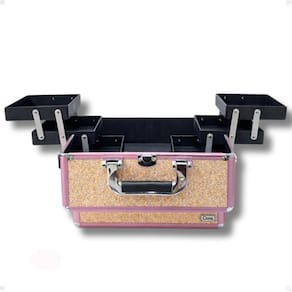 Maleta de Maquiagem Cisne Linha Shine Salmão Glitter e Rosa com 3 Bandejas – CSN-5171B A Maleta de Maquiagem Cisne Linha Shine é perfeita para quem busca organização, praticidade e muito estilo. Com acabamento Salmão Glitter e detalhes em rosa, ela traz um visual premium e estrutura resistente para guardar maquiagens, pincéis e acessórios com segurança. Possui 3 bandejas articuladas, que facilitam a visualização e deixam tudo sempre à mão — ideal para uso pessoal ou profissional.